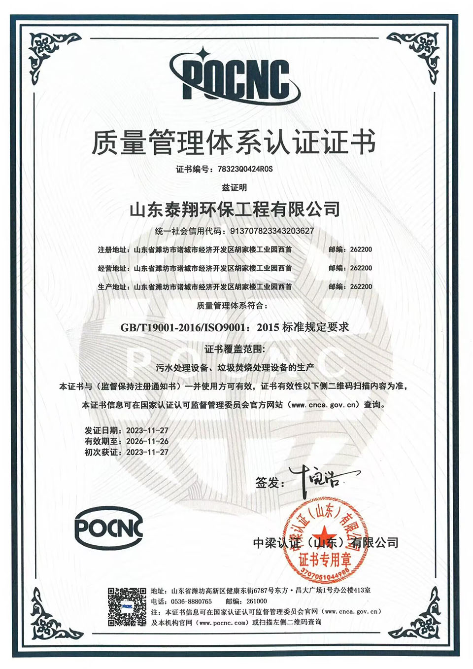 質(zhì)量管理體系認(rèn)證證書